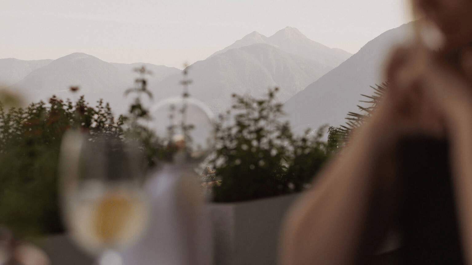 Mit einem Blick in die unendliche Weite des Landes – Pools, Palmengarten und kulinarische Genüsse erwarten Sie in Ihrem 4-Sterne-Hotel in Dorf Tirol bei Meran.