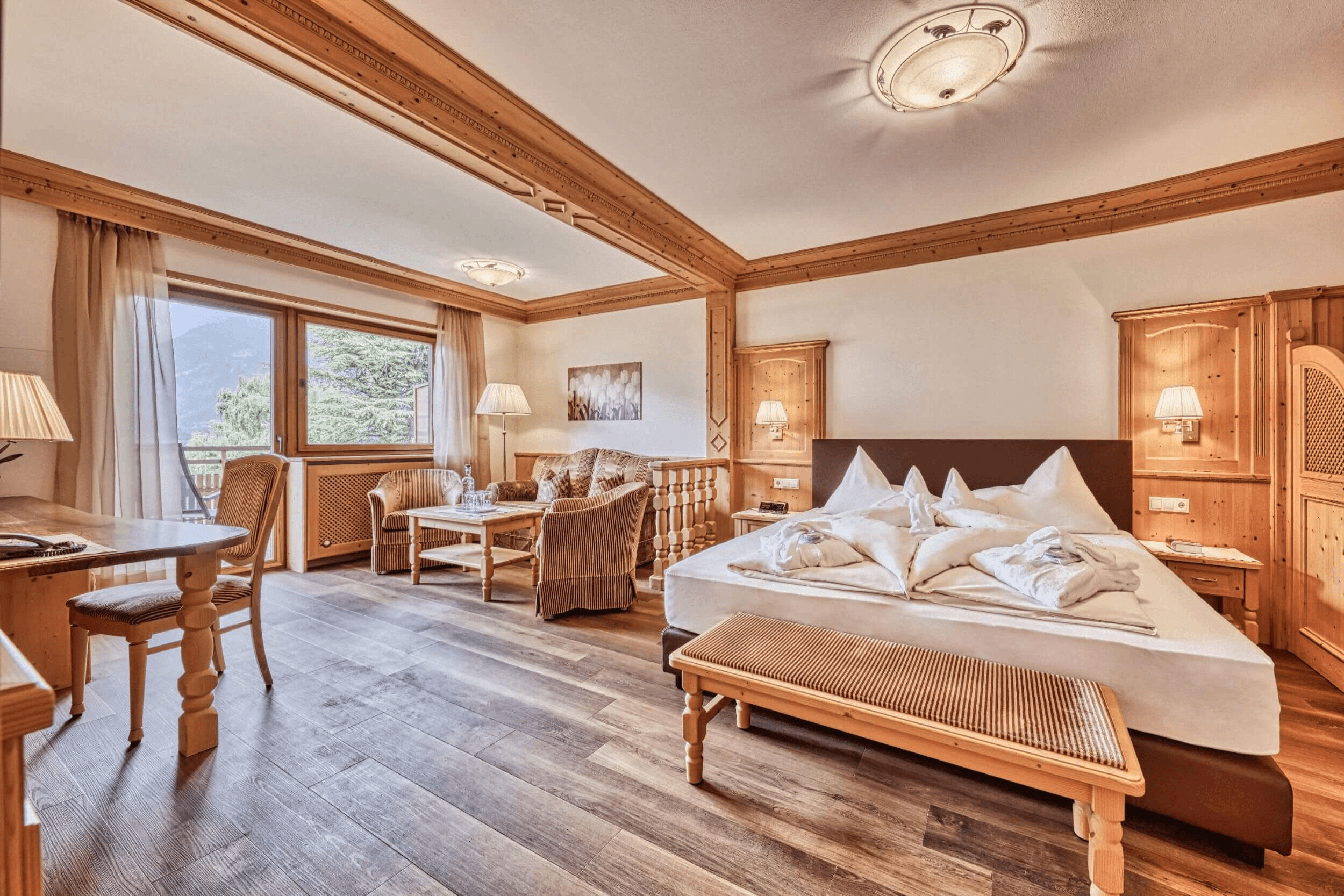 Unser familiengeführtes Hotel ist wie geschaffen für Gäste, die Erholung und Natur suchen. Wellness-Ferien oder Urlaub für Aktive müssen kein Widerspruch sein – bei uns finden Sie beides. Luxus bedeutet hier geräumige Zimmer und Suiten, die modern und mit vielen Annehmlichkeiten ausgestattet sind und zugleich den gemütlichen Südtiroler Flair ausstrahlen. Genießen Sie Ihr „Heim auf Zeit" mit allen Sinnen und lassen Sie sich von unserem Team umsorgen und verwöhnen. Herzlichst, Ihre Familie Jäger.